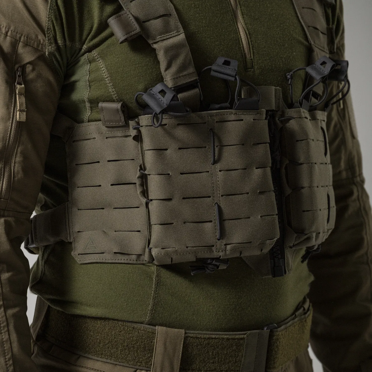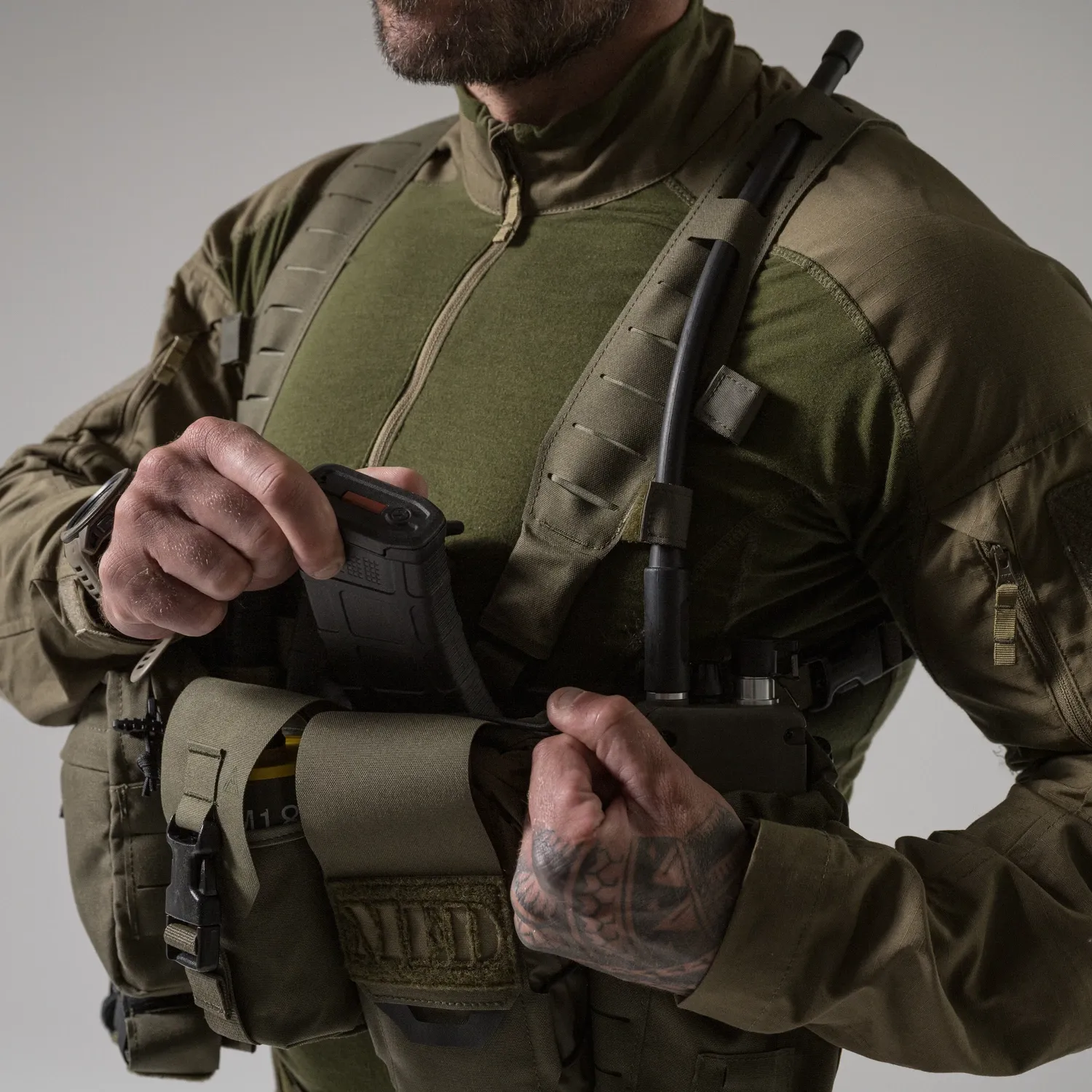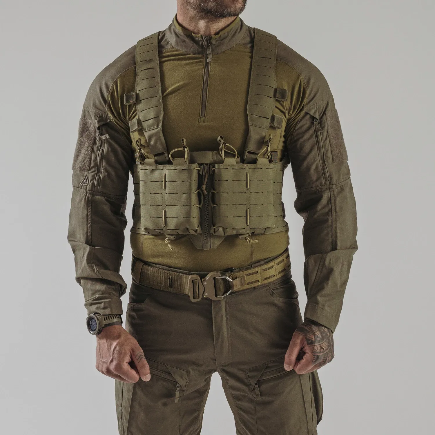 Нагрудное снаряжение TEMPEST® - это одно из наших снаряжений на молнии спереди.жение TEMPEST® - это одно из наших снаряжений на молнии спереди. Основанный на той же платформе, что и HURRICANE®, он был лишен большей части пришивных подсумков, чтобы получить гладкую, но в то же время легкую конструкцию. Единственными оставшимися подсумками являются два регулируемых подсумка для боеприпасов, предназначенных для установки в магазины AR/AK/SR. Вся поверхность снаряжения покрыта модульной системой, совместимой с MOLLE/PALS. На каждой панели имеется закрытый карман на липучке® для хранения плоских предметов, таких как карты, фотографии объектов и т.д. Благодаря съемным, полностью модульным плечевым ремням, TEMPEST® можно прикрепить непосредственно к одному из наших держателей пластин.