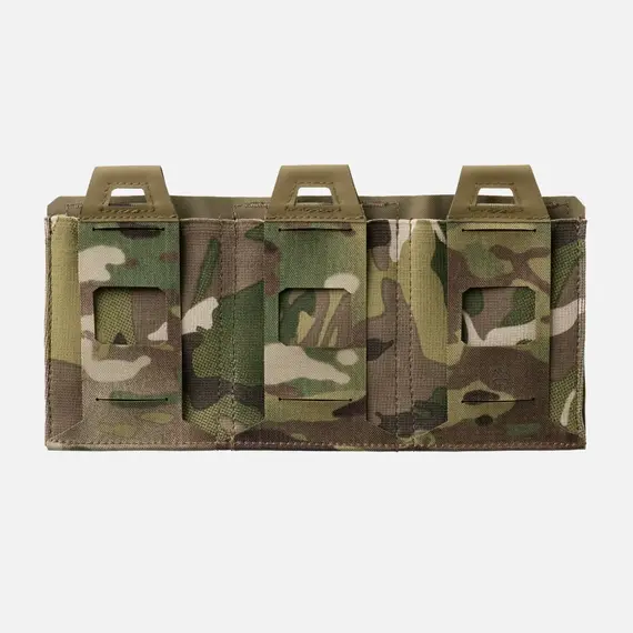 Эластичный подсумок Triple Flat - это тройной плоский подсумок, предназначенный для дополнительного снаряжения. Его плоская и легкая конструкция минимально увеличивает вес снаряжения, но позволяет носить дополнительные магазины, гранаты или другое снаряжение. Благодаря своему дизайну и используемым материалам (сочетание ламината и резины), в пустом виде сумка занимает минимум места. В передней части сумки вырезаны лазером отверстия, совместимые с системой MOLLE/PALS. Он герметичен снизу, обеспечивая защиту боеприпасов от грязи.