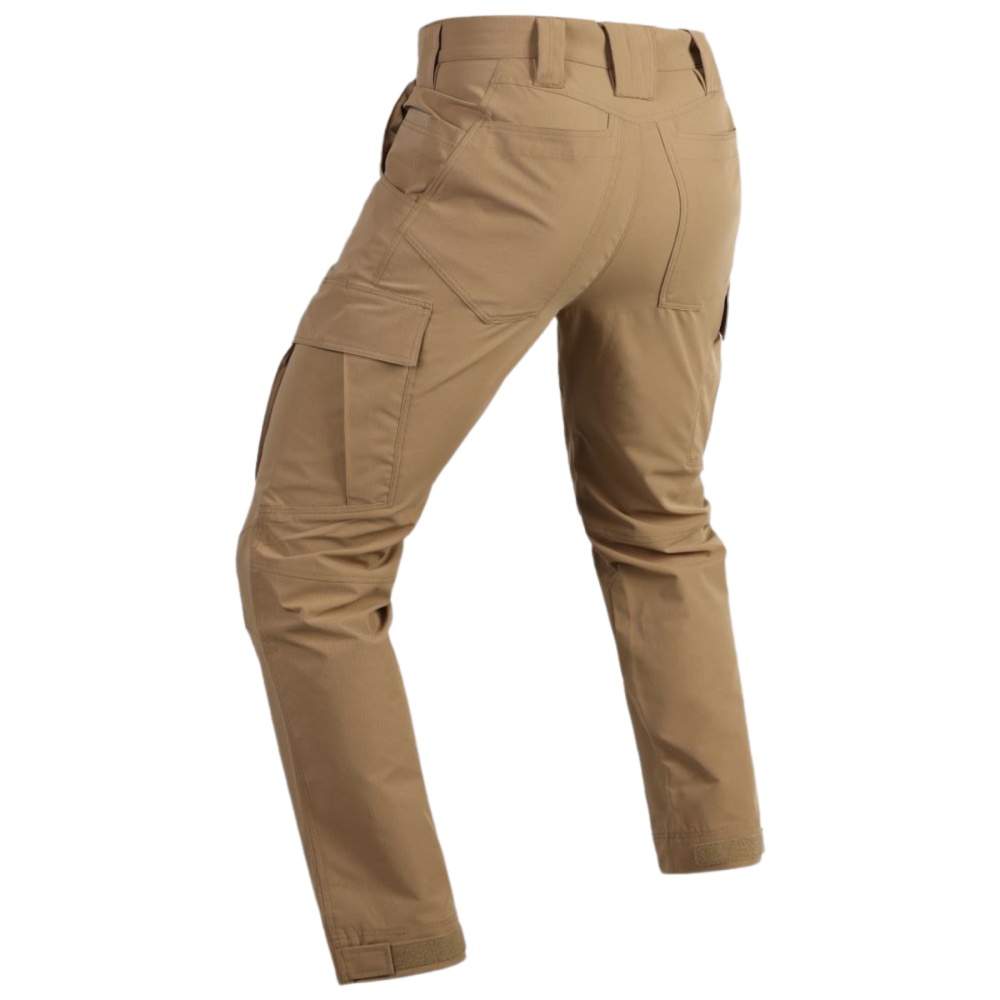 Как набедренные, так и тыльные карго-карманы выполнены достаточно вместительными, содержат внутренние эластичные фиксаторы, расширяются за счет специальных складок и закрываются клапанами на велкро. Внутри классических боковых карманов размещены дополнительные отделения, позволяющие разместить мобильный телефон, ультракомпактную радиостанцию или магазин для штурмовой винтовки серии AR. Эргономичный крой и пошив не стесняют движений владельца, позволяя бегать, прыгать, лазать по лестницам, стрелять и драться. Манжеты штанин регулируются при помощи застежки на велкро. Брюки предназначены для использования с ремнями шириной от 1" до 1.75".