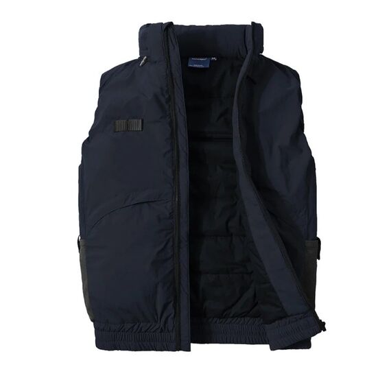 * Жилет оснащен скрываемым капюшоном: его можно аккуратно заправить внутрь специального кармана на воротнике. Капюшон так же регулируется в двух направлениях.