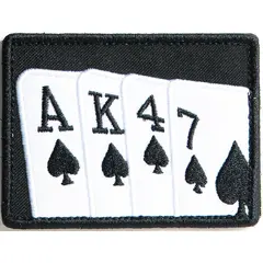 Нашивка, патч "Игральные карты АК-47" тактическая с липучкой. Текстильная быстросъемная нашивка на липучке - велкро, для одежды, шапок, рюкзаков, сумок и тд. Размер: 60х80мм.